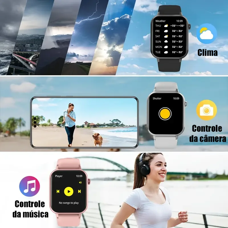Controle de música : Gerencia a reprodução de músicas diretamente no pulso.